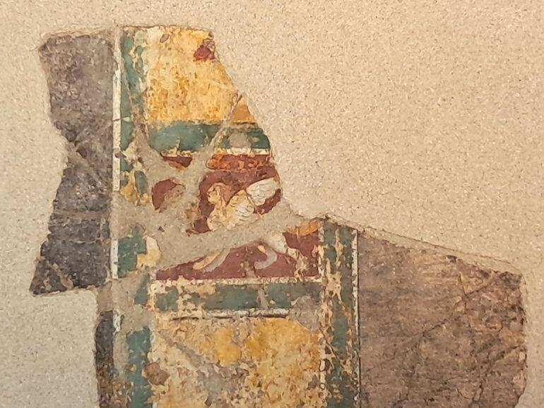 Rientriamo nell’area archeologica e dopo aver completato il giro entriamo nel museo, inaugurato appena nel 2025, e dopo la luce intensa del sole è una ventata di frescura e ombra ad accoglierci. Ombra da cui emergono le statue, silenziose testimoni del tempo, otre a vari reperti. La star del museo è senza dubbio il mosaico con Oceano, ricco di elementi ittici e fantasiosi, ma non fatevi distrarre solo da questo: accanto si trova un tratto di mosaico che ornava un corridoio. Osservate il viso centrale e rispondete: è il volto di un giovane o di un anziano?