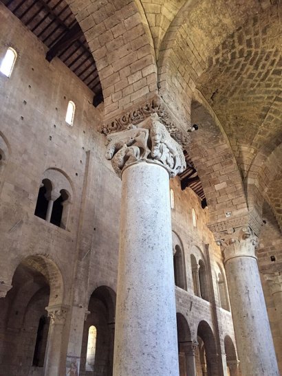 Particolare delle colonne all’interno della Basilica di Sant’Antimo © Cesare De Ambrosis