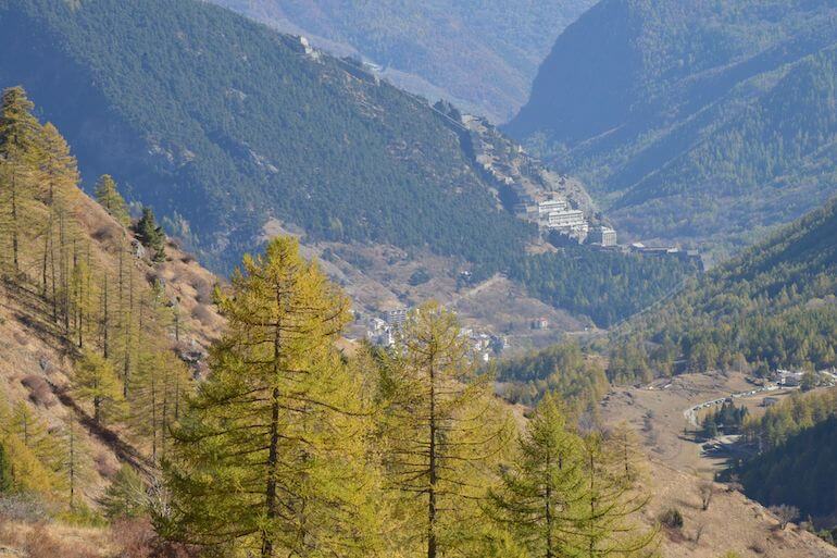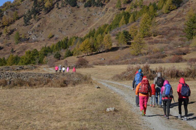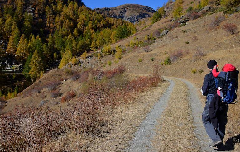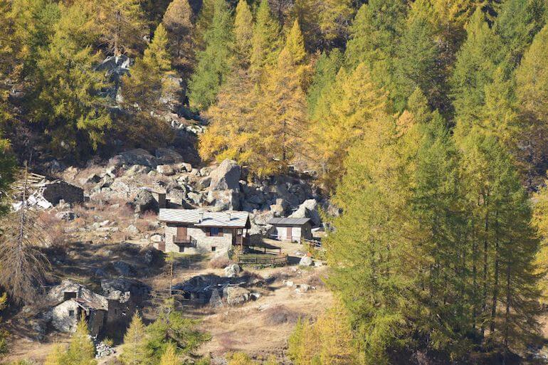 Raggiungiamo il comune di Usseaux, uno dei “Borghi più belli d’Italia”, puntando alla frazione Balboutet. Da qui proseguiamo ancora su strada asfaltata in direzione di Pian dell’Alpe ma, dopo circa un chilometro, lasciamo la vettura su uno slargo (1.660 m/slm), proprio all’altezza di una strada sterrata che si allunga verso sinistra e che andremo a imboccare a piedi.