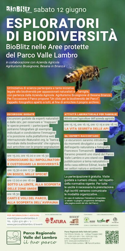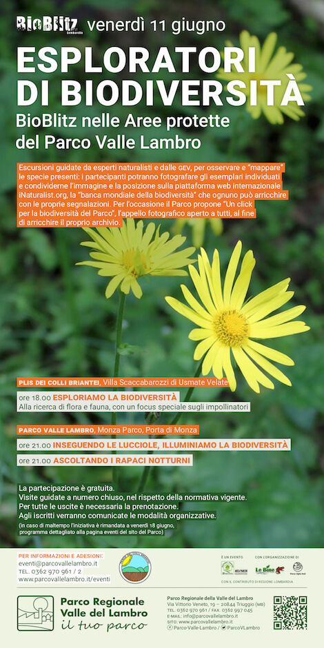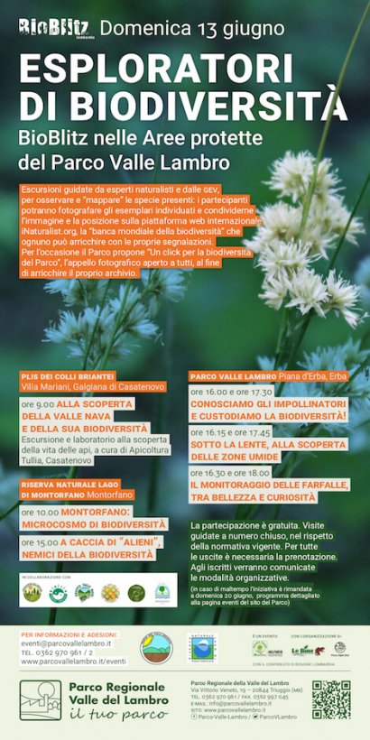 Le osservazioni raccolte contribuiranno, grazie alla piattaforma iNaturalist, a fornire dati utili sulle specie che popolano la Regione e a implementare la banca dati mondiale della biodiversità. Per l’occasione, il Parco Valle Lambro lancia inoltre “Un click per la biodiversità del Parco”, che invita i partecipanti a inviare i propri scatti migliori, che andranno ad arricchire l’archivio fotografico del Parco stesso.