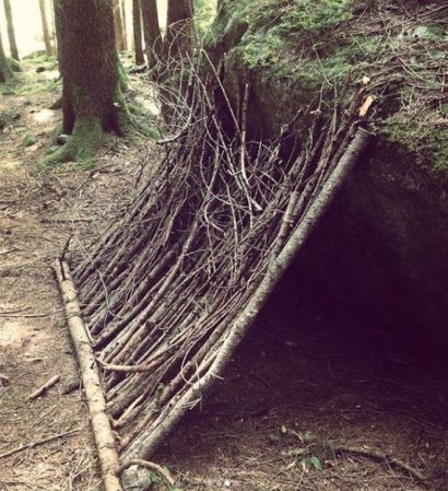 Come illustrato nelle fotografie, un solido riparo di emergenza deve guardare verso Sud, e sfruttare gli elementi già presenti nel territorio al fine di rendere meno dispendioso possibile il vostro lavoro in termini di sforzi e, quindi, di calorie spese.