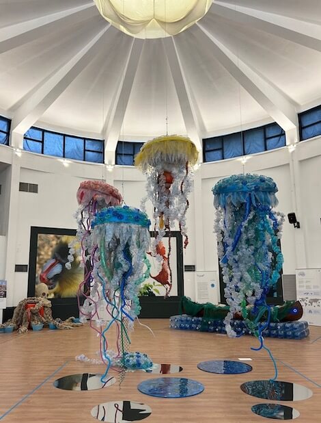 “La famiglia di meduse aliene” è un’installazione costituita da cinque meduse giganti realizzate con materiale plastico di recupero. Le meduse simboleggiano il mare gelatinoso, reso tale dall’aumento della temperatura dovuto al cambiamento climatico, dallo scollegamento dei cicli planctonici e da uno squilibrato apporto idrico dei fiumi.