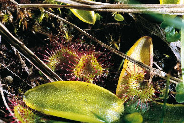 Qui vivono importanti popolazioni di libellule e soprattutto anfibi, come il tritone alpestre (Triturus alpestris), una specie legata proprio alle riserve di acqua montane. Protagonista della vegetazione di torbiera è invece la Drosera rotundifolia, una pianta “carnivora” in grado di intrappolare piccolissimi insetti con le appendici collose di un bel rosso acceso. Tra le altre zone umide del Parco, vanno menzionati il Lago della Biscia, non lontano dal Laione, il lago Scanizzon, alle pendici sud-occidentali del Monte Beigua, tutta l’area presso Pianpaludo ricca di piccole pozze e la torbiera di Canei, nel versante meridionale del Parco, più assolato e arido.
