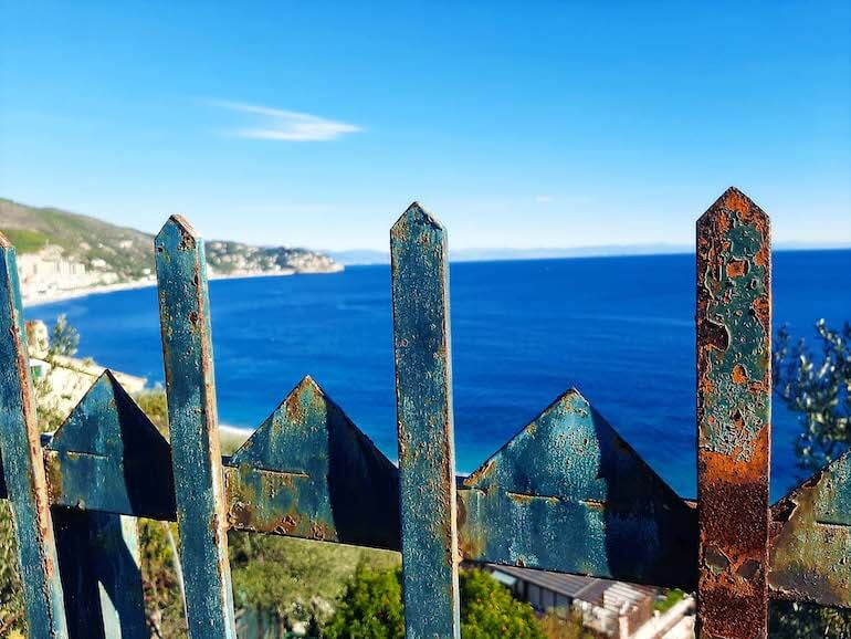 Noi teniamo invece la sinistra passando al di sotto del cimitero di Noli e arrivare ad una chiesetta bianca. Ancora un po’ di discesa ed eccoci sulla terrazza panoramica del complesso del Vescovado, da cui ammirare Noli e il suo golfo.