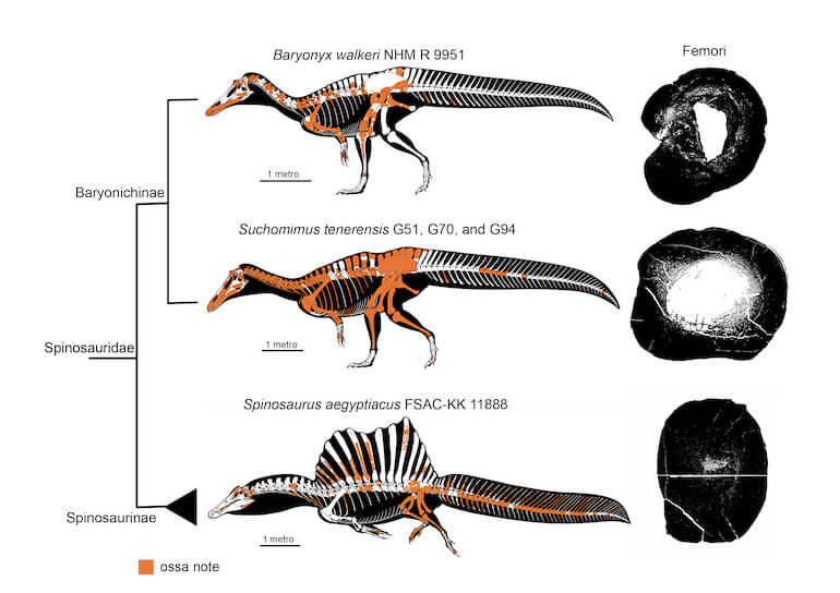 «Ce ne siamo accorti per la prima volta osservando uno spinosauro ormai famoso. Estraendo le sue ossa dalle sabbie del Sahara, in Marocco, avevo notato che all’interno erano compatte, senza cavità. Ma ora abbiamo conferma dai confronti fatti con centinaia di animali estinti e viventi» ricorda Cristiano Dal Sasso.