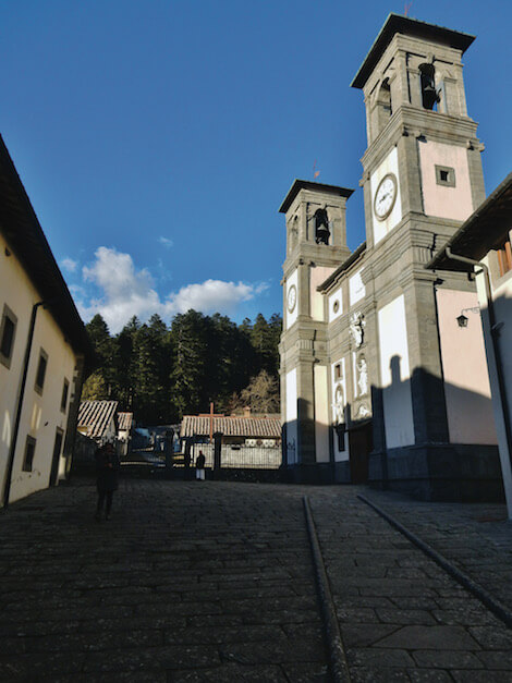 Si scende, poi, nella maestosa Foresta di Camaldoli fino alla strada asfaltata che raggiunge l’eremo, assolutamente da visitare.