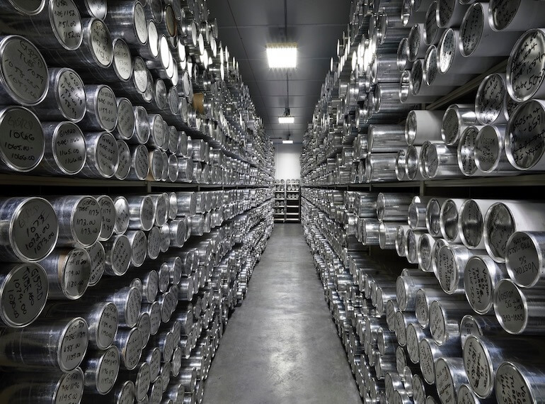 È, infine, l’immagine di un deposito di carote di ghiaccio estratte dalle profondità della Groenlandia per salvare preziose informazioni sul passato della Terra.
