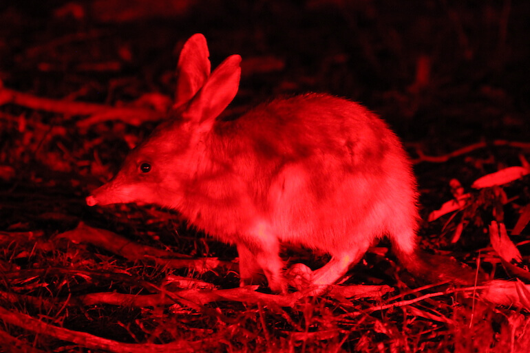 - Il bilby, raro marsupiale fotografato a Barna Mia, un ampio santuario recintato e a prova di predatori all’interno della foresta di Dryandra. © Stefano Brambilla